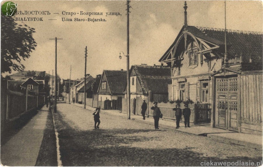 Bojary - Pozostałości drewnianego BiałegostokuByła to zabudowa, która powstawała od drugiej połowy wieku XIX w. Przeważnie były to parterowe, drewniane domy, które w wielu przypadkach możemy traktować jako przykłady mieszczańskich dworków. Od końca XIX wieku i w okresie międzywojennym powstawały nieliczne kamienice czynszowe między innymi przy ulicach Kraszewskiego, Słonimskiej i Sobieskiego oraz modernistyczne wille przy ulicach Kraszewskiego Słonimskiej i Starobojarskiej.