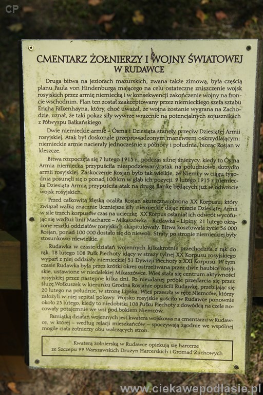 "CMENTARZEM WOJSKOWYM W RUDAWCE OPIEKUJĄ SIĘ • HARCERZE ZE SZCZEPU • 99 WARSZAWSKICH DRUŻYN HARCERSKICH I GROMAD • ZUCHOWYCH".