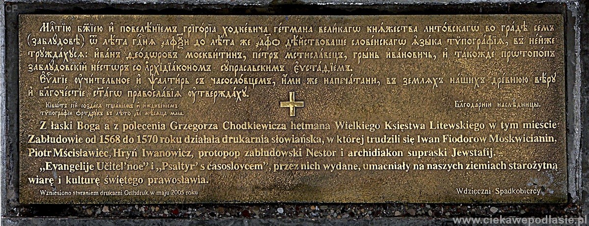 Chodkiewiczowie w ramach swych licznych fundacji ( szpitale, szkoły) budują również przy monasterze drukarnię, drugą po funkcjonującej już wtedy oficynie wydawniczej w Supraślu. Mimo krótkiego okresu działania (od 1568 r do 1570 r), dorobiła się ona kilku istotnych pozycji wydawniczych. Niestety do dzisiejszych czasów dotrwało niewiele egzemplarzy wydanych tam książek.